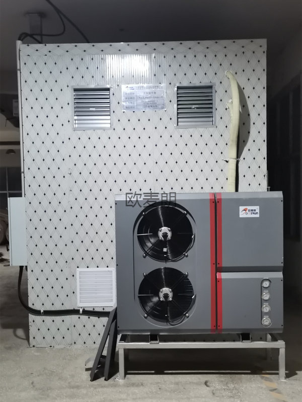 项目配置:烘干房尺寸:8.5m*2.6m*3.2m,一台欧麦朗烘干热泵机组,烘干系统烘房内温度高温可达80℃左右。烘干使用温度为75℃左右