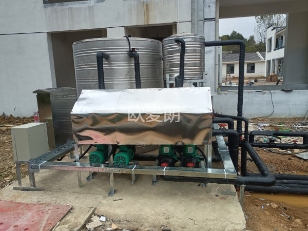 项目配置:20块平板太阳能+3吨水箱+两台欧麦朗空气能热泵