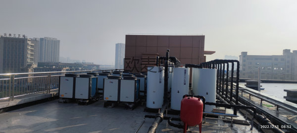 项目配置:8台直热式空气能+4个电加热水箱+16个保温水箱