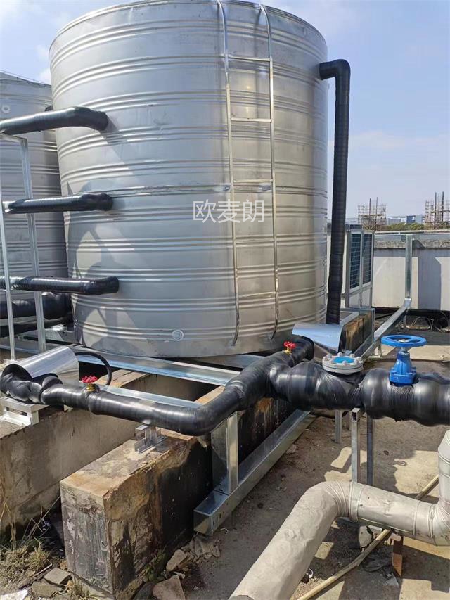 系统配置:5吨水箱+7p空气能热泵(食堂);20吨水箱+2台15p空气能热泵机组(宿舍)