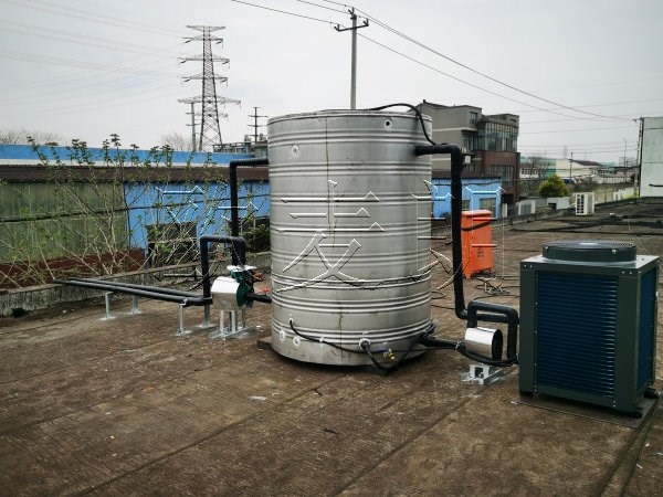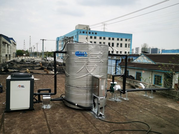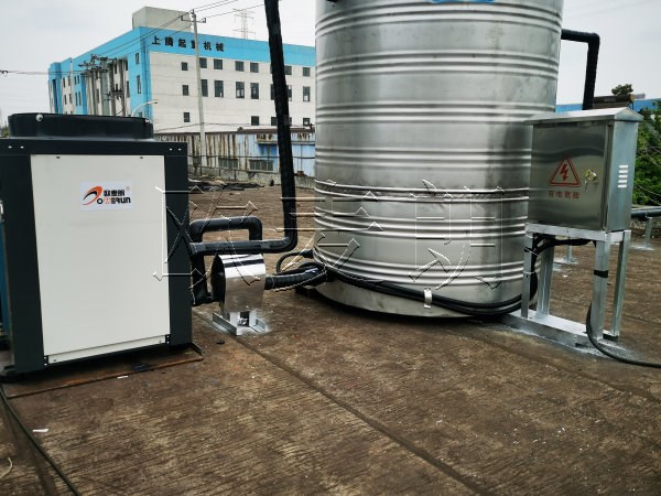项目配置:一台欧麦朗空气能热泵热水机组+一个圆形保温水箱