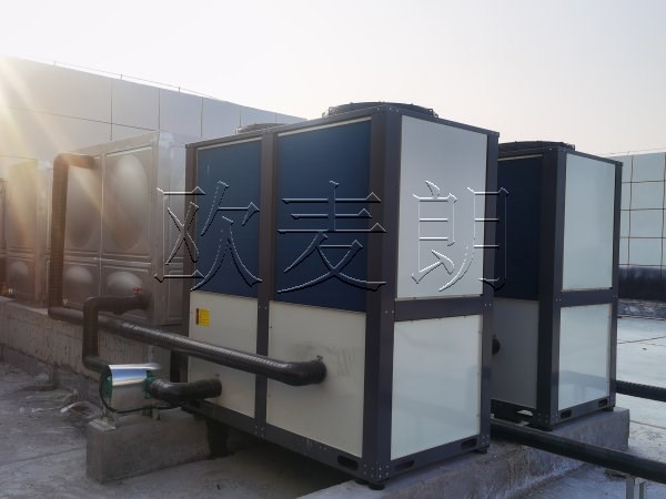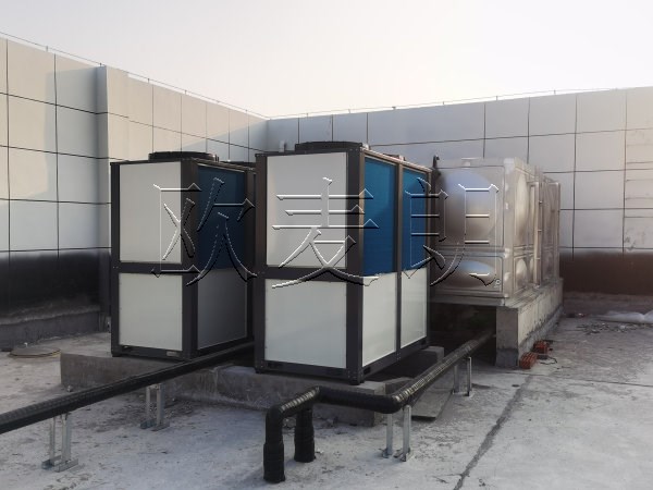 项目配置:两台欧麦朗空气能热泵热水机组+一个方形保温水箱
