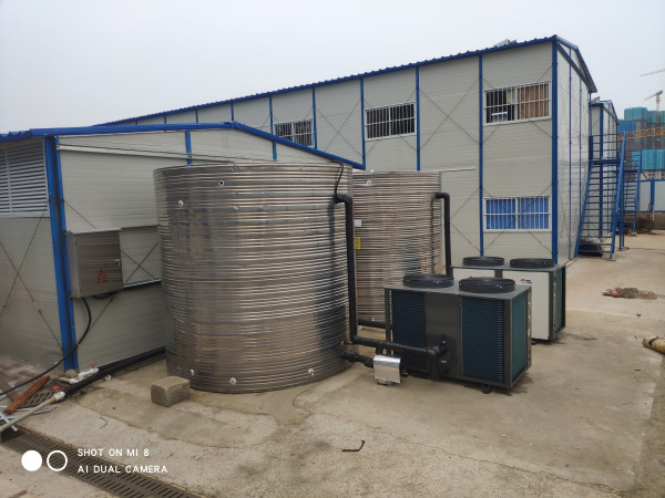 项目概况:湖北(武汉)长江电气有限公司工地需要一套空气能热水系统,满足工人用水,安装在地面上,集中在晚上用水,与欧麦朗合作,采购并安装一套全自动化智能控制的商用空气能热水系统。