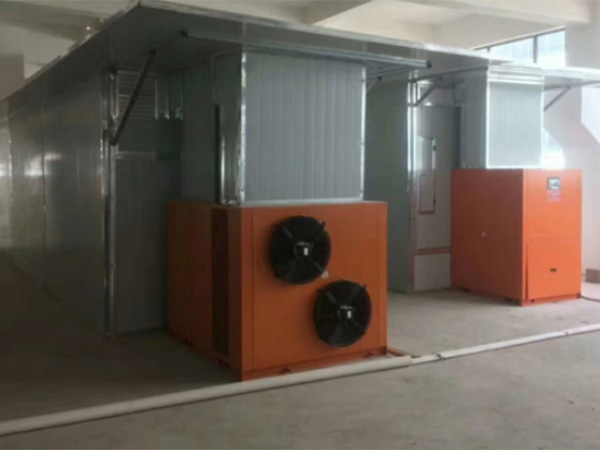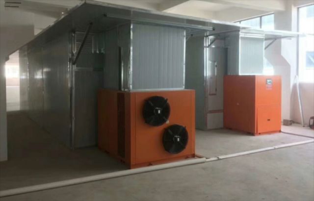 作业原理是:冷媒在压缩机的作用下在系统内循环流动。它在压缩机内完成气态的升压升温过程(温度高达100℃),它进入内机释放出高温热量加热烘干房内空气,同时自己被冷却并转化为流液态,当它运行到外机后,液态迅速吸热蒸发再次转化为气态,同时温度可下降至-20℃~-30℃,这时吸热器周边的空气就会源源不断地将热量传递给冷媒。高温热泵烘干机组在工作时,与普通的空调以及热泵机组一样,在蒸发器中吸收低温环境介质中的能量QA:它本身消耗一部分能量,即压机耗电QB:通过工质循环系统在冷凝器中时行放热QC,QC=QA+QB,因此高温热泵烘干机组的效率为(QB+QC)/QB,而其他加热设备的加热效率都小于1,因此高温热泵烘干机组加热效率远大于其他加热设备的效率,可以看出,采用高温热泵烘干机组作为烘干装置可以节省能源,同时还降低CO2等污染物的排放量,实现减排的效果。
