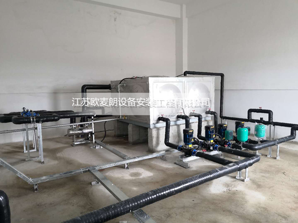 倒班楼:1个38T的方形保温水箱+ 3台OML-200C-II空气能热泵+25KW管道电加热