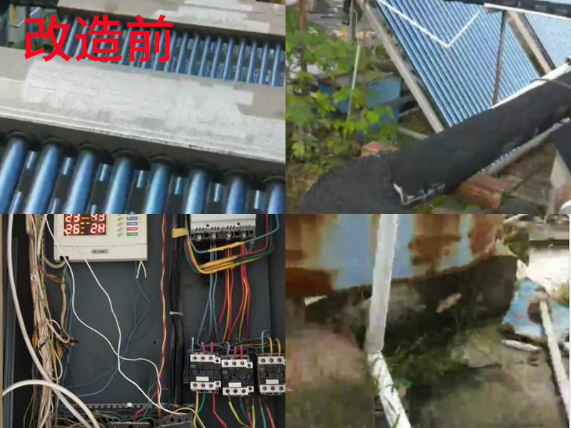 安徽某医院原先采用的是广东某型号太阳能集热器,没用几年就损坏了一半,现在热水供应跟不上,找到欧麦朗太阳能空气能厂家进行维修。欧麦朗工程人员前往当地查看后,发现主要是集热器损坏严重,经过沟通,医院负责人表示将原有太阳能集热器全部更换为欧麦朗金属超导热管太阳能集热器。以前的电加热辅助系统,也更换为空气能热泵辅助系统。