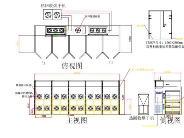 4、烘房尺寸长8600mm*深2750mm*高3450mm,每间烘房独立控制启停。