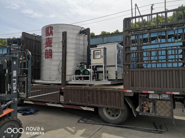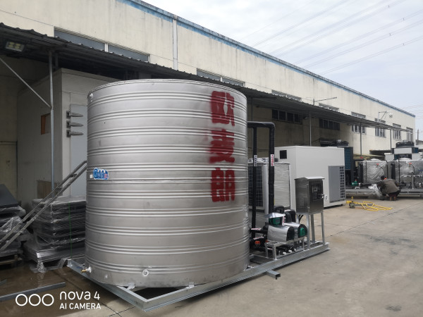 现在公司为解决连云港盛宏云海湾一期项目工地400名工人洗澡问题,选用了欧麦朗空气源,公司考虑项目结束后设备拆除和搬运的方便,选用了空气源一体机,配置10吨保温水箱,一台15匹低温空气源,满足使用需求,设备已运送至甲方指定地点,调试完毕,正式投入运行,受到客户的好评。