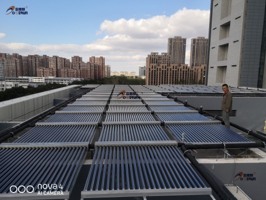 项目配置:100组太阳能集热器+3台空气能热泵热水机组