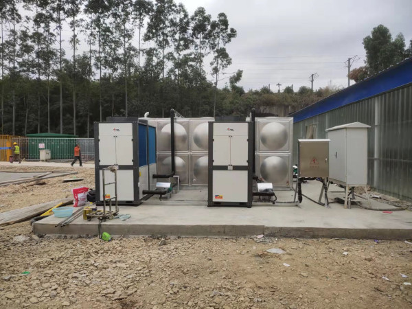 要满足这么大体量的生活热水,需要用什么设备呢?有人说用太阳能,确实太阳能能提供免费热水,0成本运行。但是需要考虑到安装面积,人数少的工地还好,有足够的地方可以摆放太阳能,人数一多,太阳能占地面积就广。同时还要考虑到阴雨天和冬天等光照不足的时候,太阳能的效果会大打折扣。所以太阳能不是理想的解决方案。