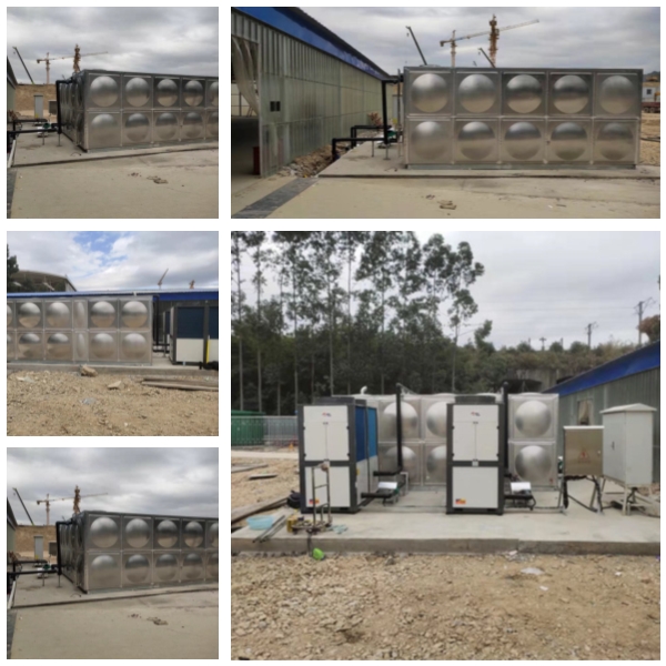 这个时候有人问空气能热水器到底有没有你们说的这么好,是不是忽悠人的?别急,现在就给大家看看我们的工地空气能热水器案例,中铁福州南站房项目部空气能热水系统。这是客户第二次采购了,采用的是50吨方形保温水箱,两台空气能热泵,为工地1000名员工提供洗浴生活热水。经过调试现在已经交付使用,正是因为客户对使用效果感到满意,才会再次采购我们的空气能热水系统。很多工人用了这套系统都说好!好在哪里呢?首先这套系统是智能化设计,一键操控,无需专人看管,自动运行,可以保证24小时出热水,即开即用。其次就是它是支持5G智能互联的,可以在手机电脑等设备上实时监测到系统的运行情况,包括水温、水位、功率等。最后就是它的安全性,它是水电分离设计,同时拥有智能监测报警、漏电保护等功能!