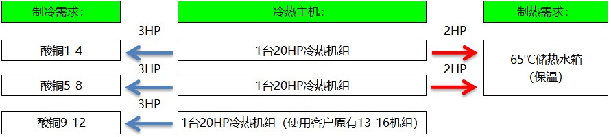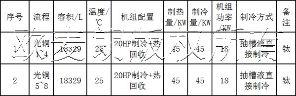 注:1、增加两台冷热机组直接对应酸铜1-4、5-8槽直接抽槽液制冷;