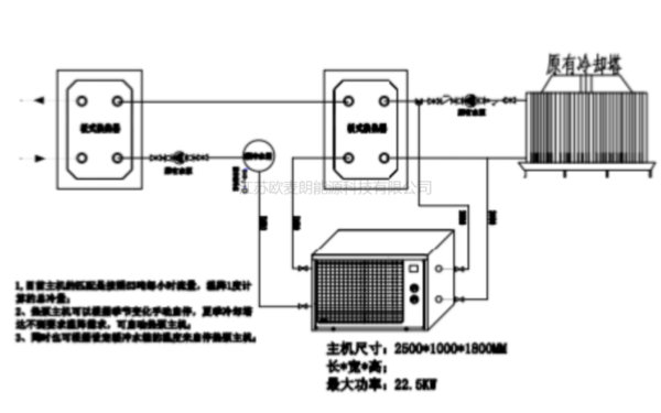 2、同时在原有系统增加一个水水换热器,避免循环水被二次污染影响原有系统;