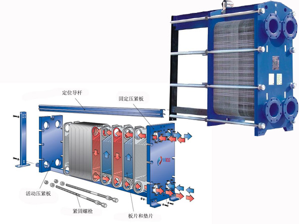 億彩 可拆卸板式换热器是由许多冲压有波纹薄板按一定间隔,四周通过垫片密封,并用框架和压缩螺钉重叠而成。板和垫片的四个角孔构成了流体分配器和集液管。同时,冷流体和热流体被合理地分离,以便它们在每个板的两侧被分离。在通道中流动,通过板进行热交换。
