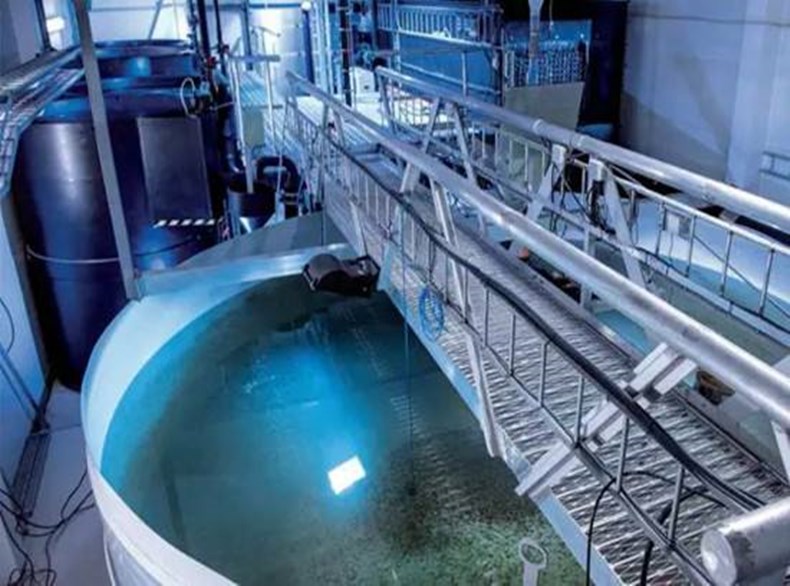 工厂化循环水养殖模式集现代工程、机电、生物、及饲料等多学科于一体,在相对封闭空间内,利用过滤、曝气、生物净化、杀菌消毒等物理、化学及生物手段,处理、去除养殖对象的代谢产物和饵料残渣,使水质净化并循环使用,少量补水(5%左右),进行水产动物高密度强化培育。