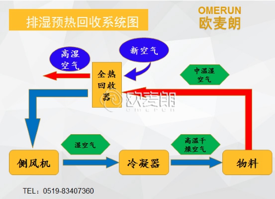 ●:在系统设计中,大化吸收废热,运行费用比其它热风烘干设备60%-80%,大大节约运行费用。