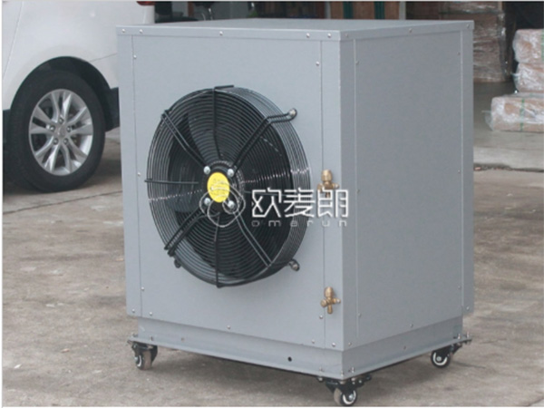 空气源热泵億彩烘干机组,主要有翅片式蒸发器(外机)、压缩机、翅片冷凝器(内机)和膨胀阀四部分组成,通过让空气不断完成蒸发(吸取室外环境中的热量)→压缩→冷凝(在室内烘干房中放出热量)→节流→再蒸发的热力循环过程,从而将外部低温环境里的热量转移到烘干房中,冷媒在压缩机的作用下在系统内循环流动。