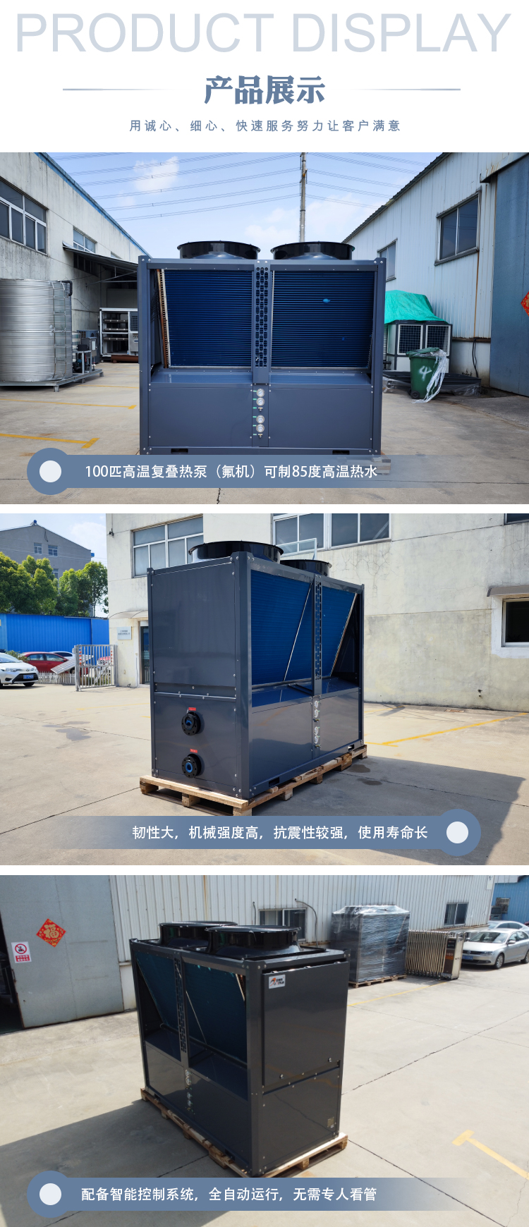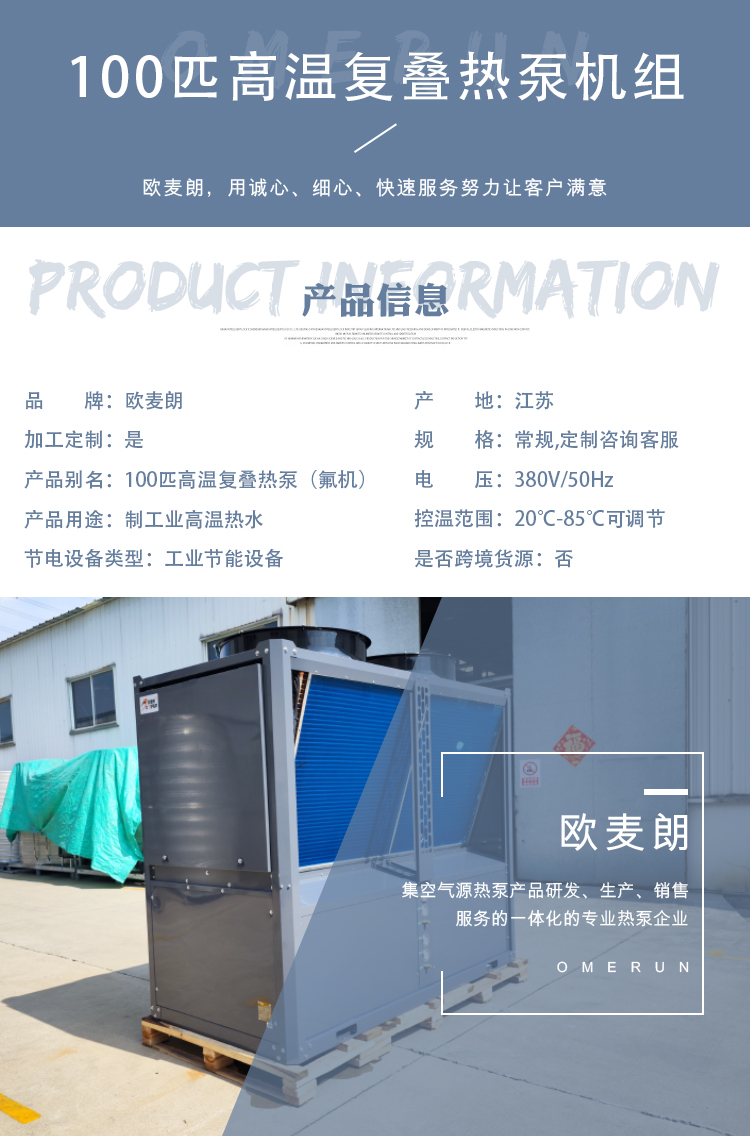 简介:100匹高温复叠热泵,可制85℃高温热水,可用于电镀厂、印染厂、化工、医药、金属前处理、屠宰场等企业高温用水需求!