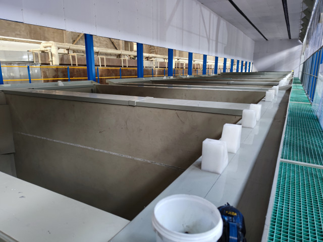 2、酸性脱脂槽:配置4台25匹钛管高温热泵机组直接循环加热
