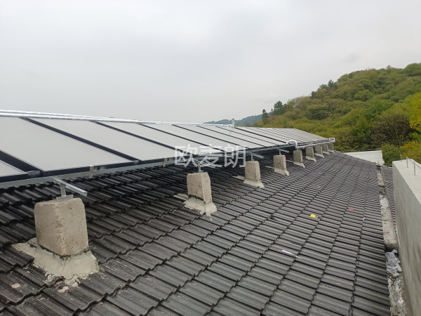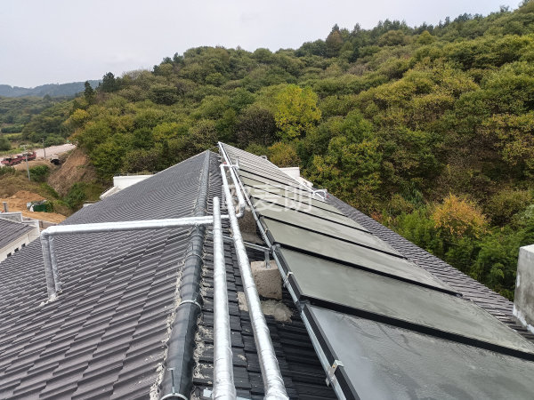 项目配置:20块平板太阳能+3吨水箱+两台欧麦朗空气能热泵