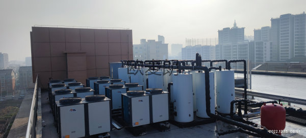 项目配置:8台直热式空气能+4个电加热水箱+16个保温水箱