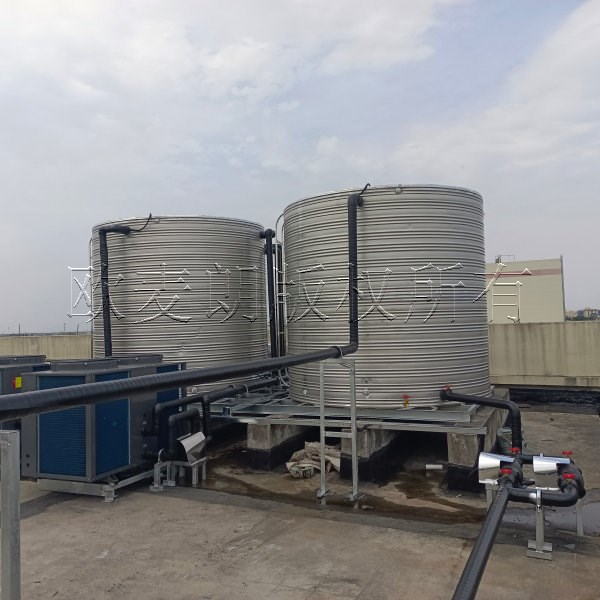 项目配置:20组太阳能集热器+2台空气能热泵+圆形保温水箱