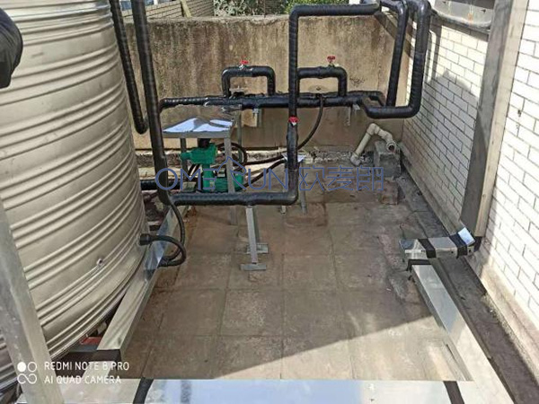 设备配置:5吨的水箱+10组50管集热器+电加热辅助热源