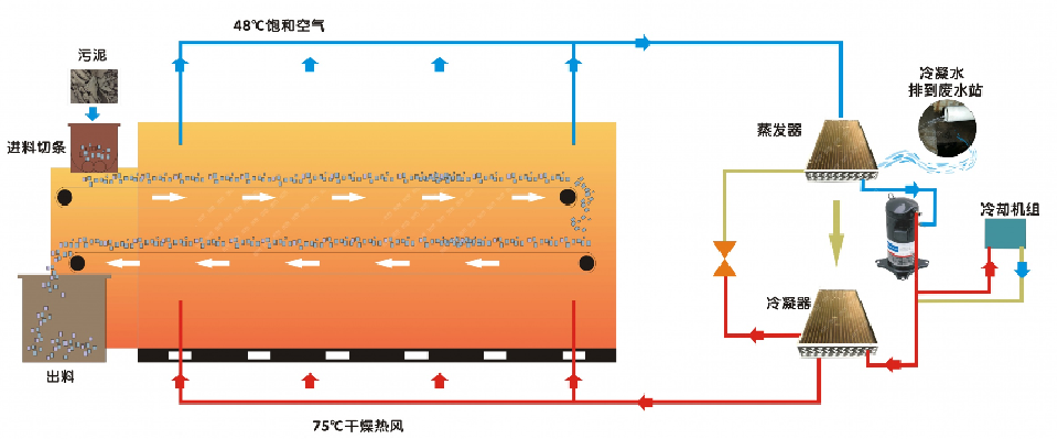 热泵污泥烘干机具备污泥挤条成型及粉碎成型技术,根据污泥含固率不同采用不同铺料模式。热泵污泥烘干机可充分实现对污泥进行“减量化、稳定化、无害化和资源化”处理,电镀污泥回收率高。