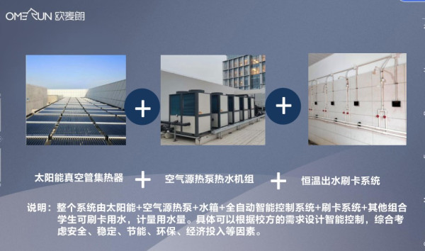 江苏欧麦朗公司是空气能热泵、太阳能系列产品生产厂家。旗下设有安装工程公司是专门承接空气能、太阳能热水工程、商用冷暖热泵空调工程、热泵烘干工程、余热回收系统工程等。为客户提供“太阳能+”“空气能+”多能源组合的解决方案,为客户节约、降耗,余热回收,能源再利用。承接学校热水工程改造和新建项目十多年,有着实战的经验。