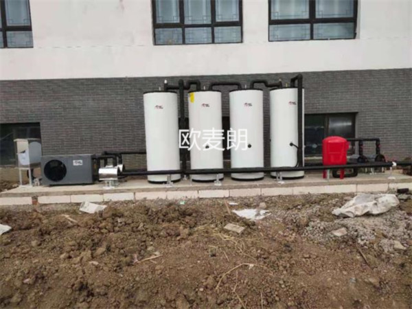 欧麦朗品牌承压式空气源热泵热水系统,它摒弃了传统开式系统的做法,将开式大水箱分解成多个模块化的455L闭式储热水罐。整套系统不再只提供主机,更是集成了原厂标准化的加热水箱、储热水箱以及系统辅件。在实际运行中,这种系统的运行能耗比开式热泵热水系统节能30%,真正实现恒温恒压供热水,还能实现分布式安装。