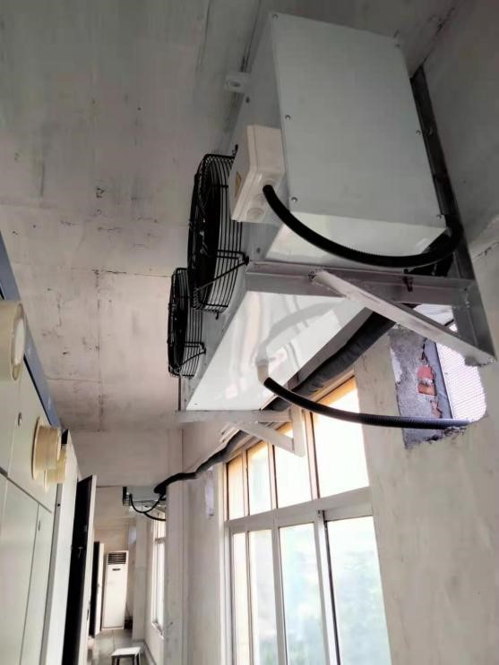项目位于广东省江门市,鹤山市华美金属制品有限公司,每个制造车间都配有一个设备机房,全年机房内温度都很高,原来使用的水冷机组+冷却,效果不是太好,到夏天的时候温度还是降不下来,后增加了专用机房降温风冷热泵机组,直接对机房内吹冷风,在7月份最热的时候,机房温度有明显的改善。