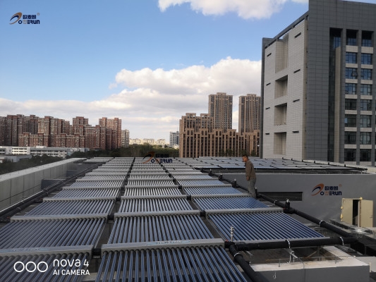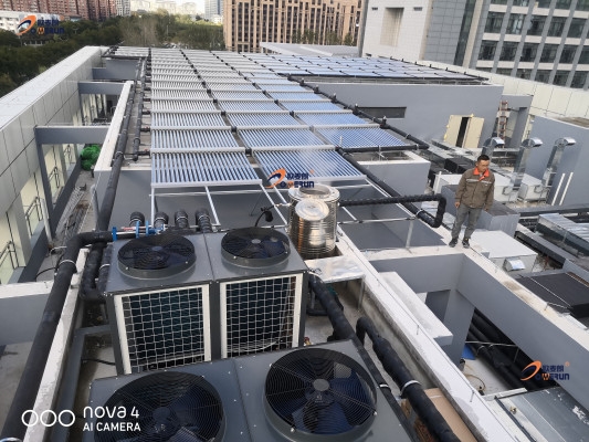 项目配置:100组太阳能集热器+3台空气能热泵热水机组