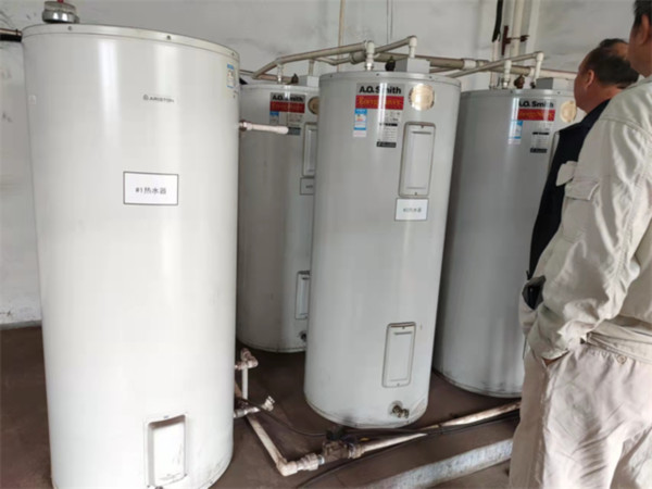 之前有6台AO史密斯的300L电热水器,但是不能满足一天2吨水的用量,需要改造,经过我司现场实地看了以后,发现是由于外面经销商施工不专业,管道没有走同程,这样导则6台300L的电锅炉并没有完全被使用上,只有2台锅炉每天在工作。