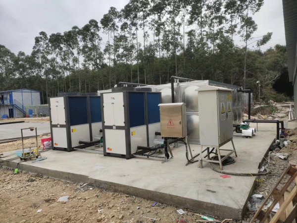 要满足这么大体量的生活热水,需要用什么设备呢?有人说用太阳能,确实太阳能能提供免费热水,0成本运行。但是需要考虑到安装面积,人数少的工地还好,有足够的地方可以摆放太阳能,人数一多,太阳能占地面积就广。同时还要考虑到阴雨天和冬天等光照不足的时候,太阳能的效果会大打折扣。所以太阳能不是理想的解决方案。