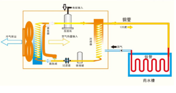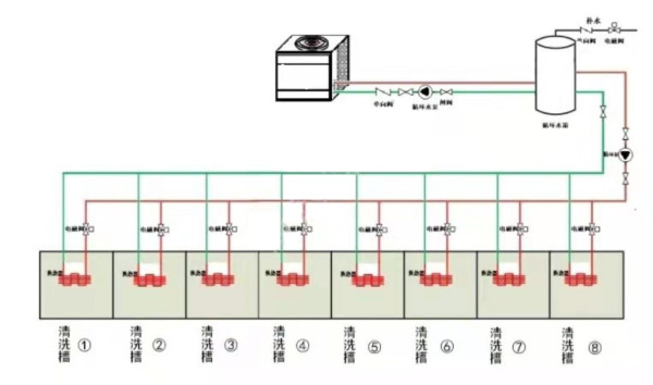 第一种直接加热:利用空气能加热的电镀槽系统,如下图所示: