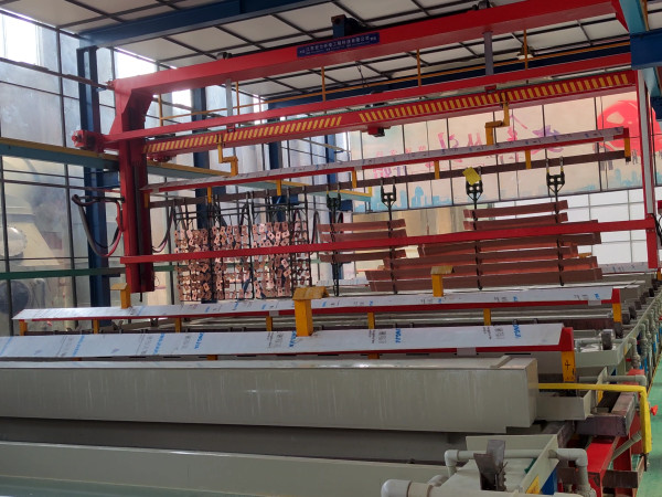连续电镀又称卷对卷电镀,素材一般是带状可以卷起来的,如钢带,连续冲压后的产品。电镀流程经放料--前处理--电镀--后处理--烘干--收料组成。每个电镀槽一般分为母槽和子槽,药水从母槽中用泵打入子槽中,子槽两边有缝隙,要镀的料从缝隙中穿过,打入子槽的药水也从缝隙中流出而流入母槽。