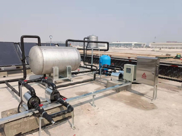 这样的系统具有多种能源综合利用的特点;天气晴好时利用免费的清洁能源太阳能,温度到不到时空气能启动,阴雨天空气能也可以自动启动;由于是闭式系统,因此水质不会与空气能接触,这样更干净卫生;避免了二次污染的风险,相对于开始系统而言更稳定更节能。