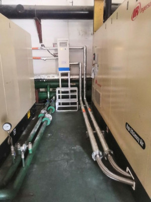 美的广州生产基地为满足节能环保要求,需要对冰箱门板发泡烘干线进行节能改造。 在经过现场勘验和技术汇总过后。我们发现生产车间中有多台空压机设备。