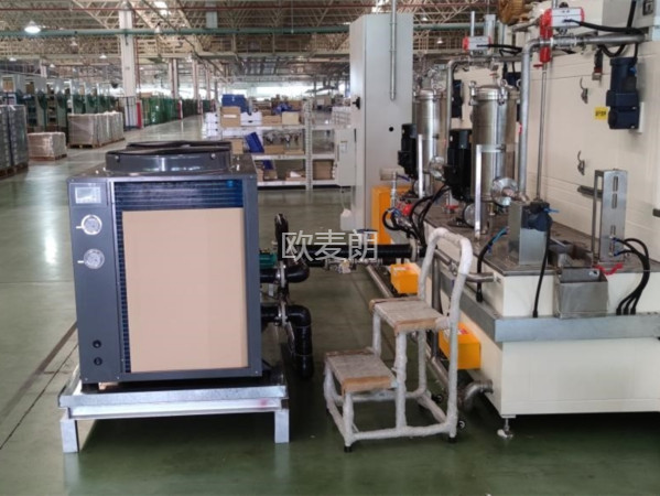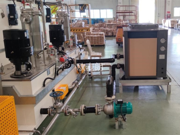 项目配置:考虑到在清洗液中会添加部分清洗剂,配置了一台欧麦朗抗腐蚀空气源热泵机组。