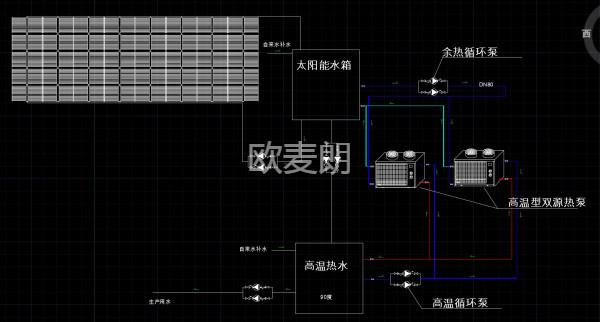 欧麦朗致力研发工业节能降耗方案。公司生产产品包括:太阳能、空气能、水源热泵、双源热泵等。经过多年节能工程的技术积累,研发出最新的高温热水解决方案,太阳能与双源热泵的结合,大大的节省了高温热水的能源成本。下面就为大家介绍我们的太阳能+双源热泵方案。