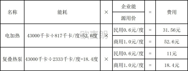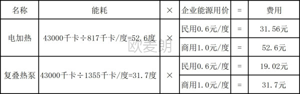 1、春夏秋耗电及费用(以需要43000千卡(50KW)的热量为例)