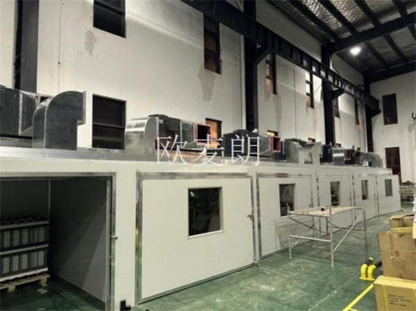 针对电池老化的特点,欧麦朗研发采用热泵技术代替传统的电加装置技术方案,系统由热泵机组、盘架、拉门、循环风机和风道组成。通过循环风机为老化房提供热风,设备模拟出一种高温、恶劣环境,通过该老化房对电子产品进行测试,让产品在此环境中接上模拟负载通电运作,通过此测试可查出不良品或不良零件,使客户迅速找出问题、解决问题的有效手段,充分提高客户生产效率和产品品质。