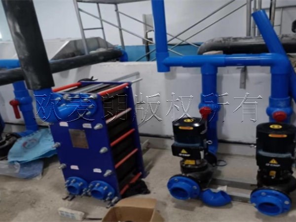 经计算得出配备“OML-500A-II(50P)”,总共配备5台(50匹)机组提供即可满足此育苗池的设计温度要求;整套系统采用间接加热方式,配备储热水箱及板式换热器,通过空气能热泵加热储热水箱,水箱温度可控制在35-40度左右,水箱另一端在连接板式换热器,板式换热器另一端连接养殖池,通过热量传递方式进行换热,以达到养殖池所需的温度要求。