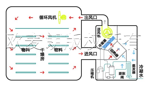 热泵烘干除湿系统主要由制冷系统和加热系统组成。制冷系统通过吸收烘房空气中的热量,将空气中的水分凝结成水珠排出,同时将空气降温。加热系统则将除湿后的空气进一步加热到所需温度,从而满足烘干的需要。热泵烘干除湿系统的核心部件是热泵,它由压缩机、冷凝器、蒸发器和控制阀组成。