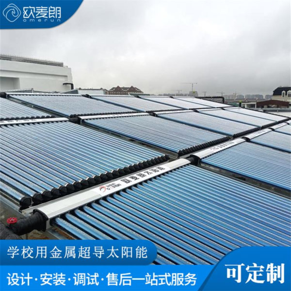 上海沪港学校迎合时代需求,为满足学校师生生活热水,采用欧麦朗金属超导太阳能集热器,目前整套系统运行下来,效果非常显着,故障率明显比之前低很多,哪怕是天气再冷,也不会出现太阳能管被冻坏,2个容积式换热器作为辅助热源,全年下来,电费也节省了将近一半,符合节能环保绿色时尚的理念。