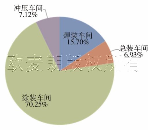 汽车生产制造过程包含冲压、焊接、涂装和总装四个工艺过程,依相关统计,其中涂装车间涉及加热、冷却、动力、通信控制、照明等,能耗在整个制造生产过程中(冲、焊、涂、总)占比蕞大,所占费用比例在70%以上。