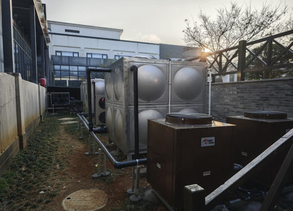 3、主楼新增2台5匹低温空气能热泵、恒温补水系统、加装一个8吨水箱及配套循环泵、管道等辅助辅材。