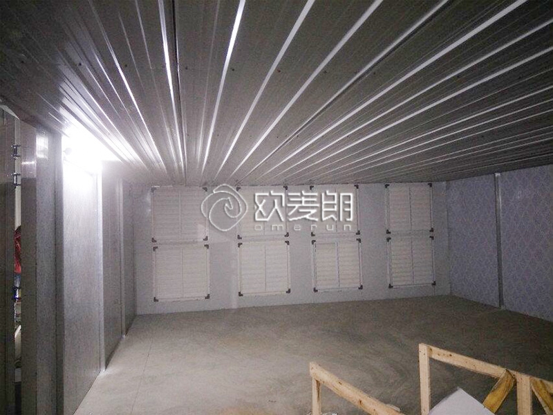 本设备为分体式结构,主机可放在烘房外,也可放在车间外,室内室外均可安装,内风柜置于烘房内,根据风道需求可用于直吹,也可安装在回风道上,用铜管相连,安装灵活方便,。