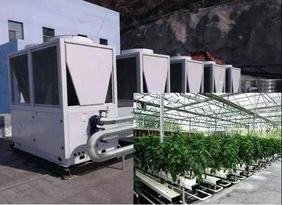 空气能热泵(空气能热泵冷暖机50P)是一种完全不烧煤的设备,可以利用空气中无处不在的热量来提供热水,配合供暖末端完成供暖。其制热效率非常高,普通燃煤锅炉的制热效率仅有85%左右,而空气能热泵的制热效率可以超过200%,可以达到400%。热泵消耗1度电,可以从空气中“搬运”好几倍的热能。热泵机组提供大量热水后,配合大棚内的大量风机盘管以及热水管道,可以显著提升大棚内的温度,为种植养殖提供一个完美的生长环境。